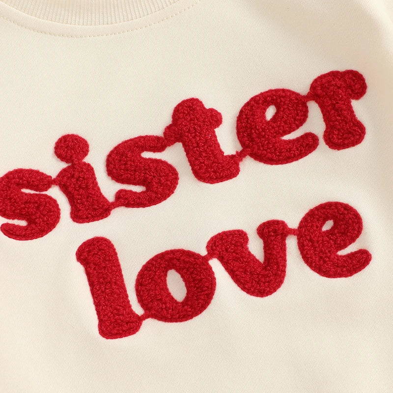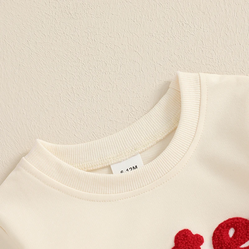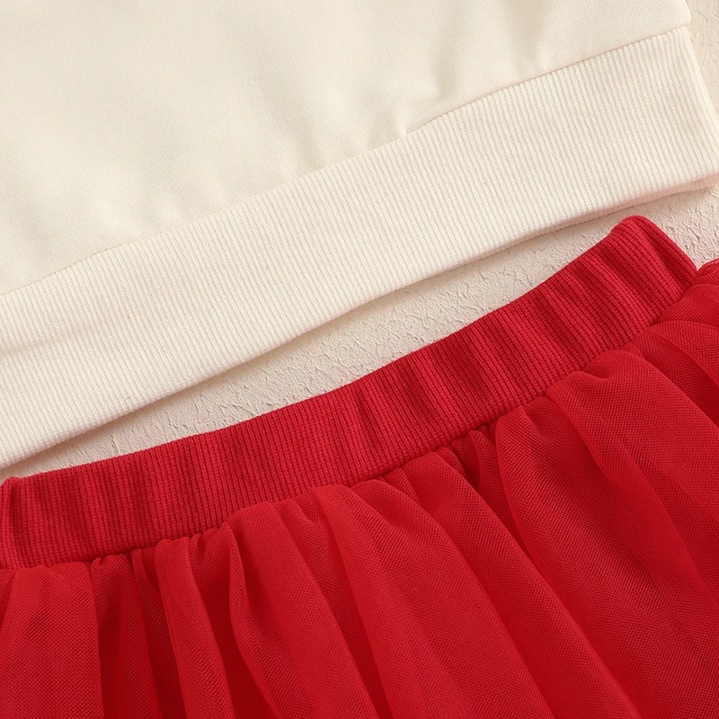 Kids Girls Skirt Set, Long Sleeve Embroidery Letters Sweatshirt with Tulle Skirt Valentines Day Outfit
